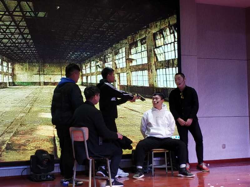 检察事务二班表演话剧《大笑警匪》,讲述为保卫人民群众的生命财产安全,人民警察毅然接受命令,执行卧底任务的故事。