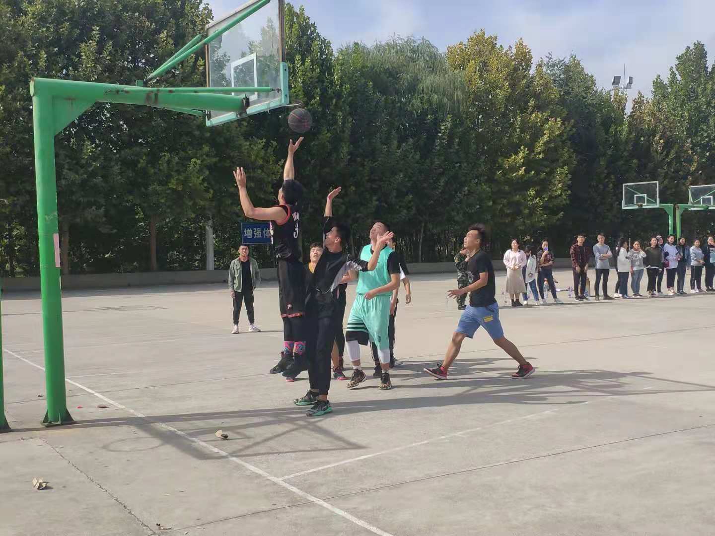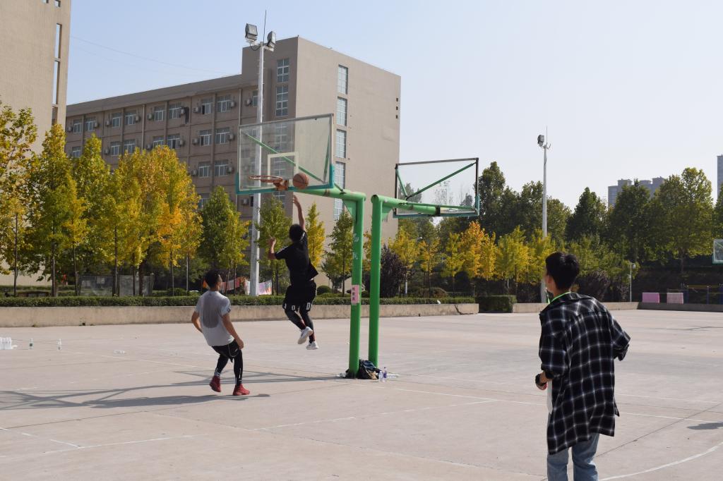 球员奋力一跃,那腾空而起的弧线,在太阳的照耀下,闪烁着青春的光芒,如果把篮球场看作是一块巨大的画布,那扬起的弧线就是最美的勾勒。