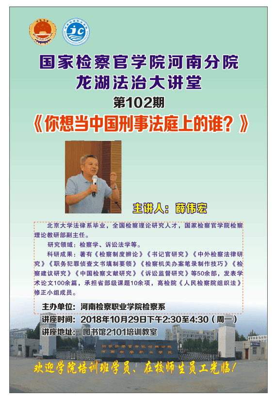 国家检察官学院河南分院龙湖法制大讲堂 第102期 你想当中国刑事法庭的谁