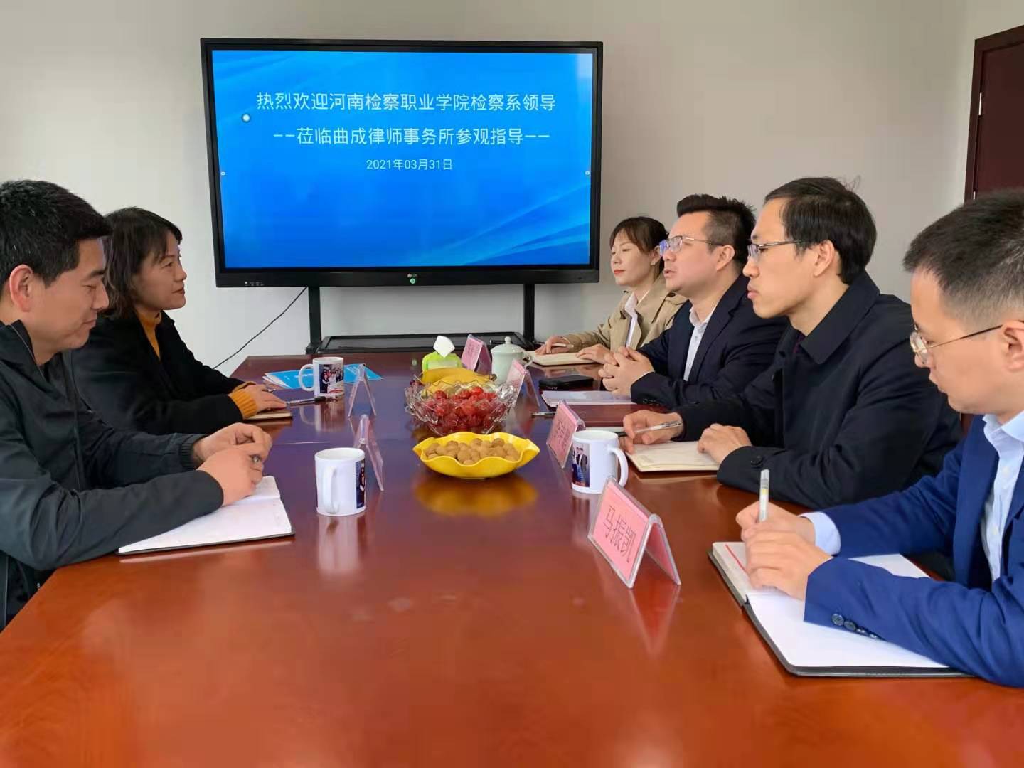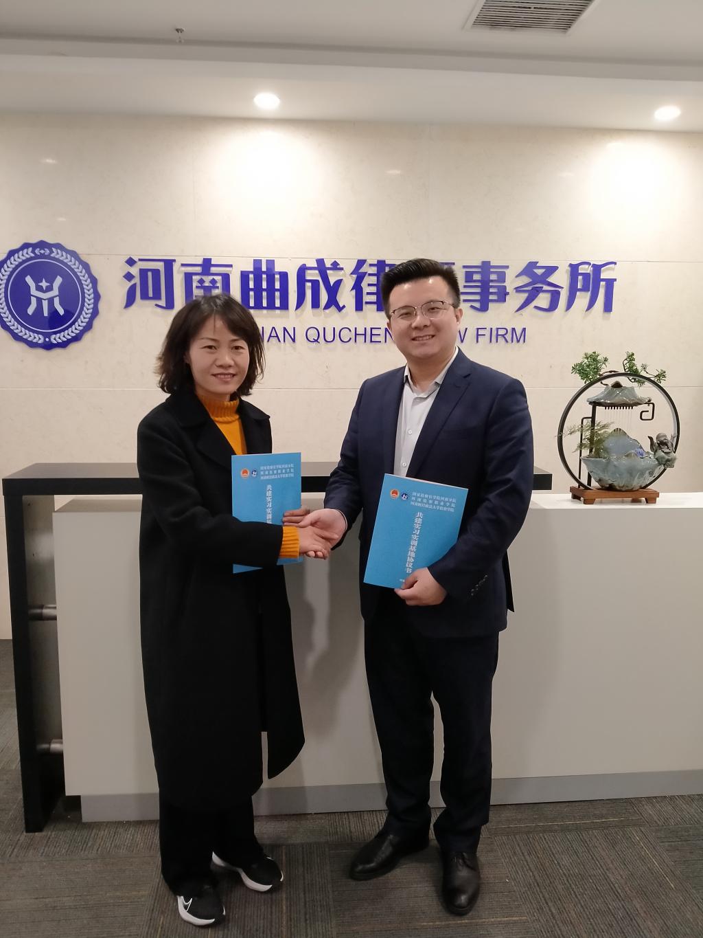 2021年3月31日上午,受学院领导指派,检察系副主任郭月霞、教学秘书武凯一行,前往河南曲成律师事务所,与该所主任律师上官绪波友好协商,就共建beat365官方网站实习实训基地一事达成一致,并举行了签约仪式。该所合伙人马振凯、李申鹏,法律援助部负责人朱亚萍等参加了座谈。