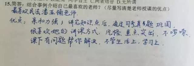 潘:我能说这是自带的效果吗?我觉得在讲台上不止要有严肃的一面,更多的可以把学生当作民法爱好者一样去用心交流,用轻松的语言举一些有趣的事例,多用启发性的设问,和学生轻松的互动。课堂偶尔聊一些关于社会、就业、恋爱的话题,其实也是在于给学生正面的引导。关注学生要求,教学资源师生共享,尽心帮助学生答疑解惑。备课、上课、回复学生的各种问题是我的工作常态。老师发自内心地爱学生,才有了学生对老师的信赖,老师的威信才会逐步确立。