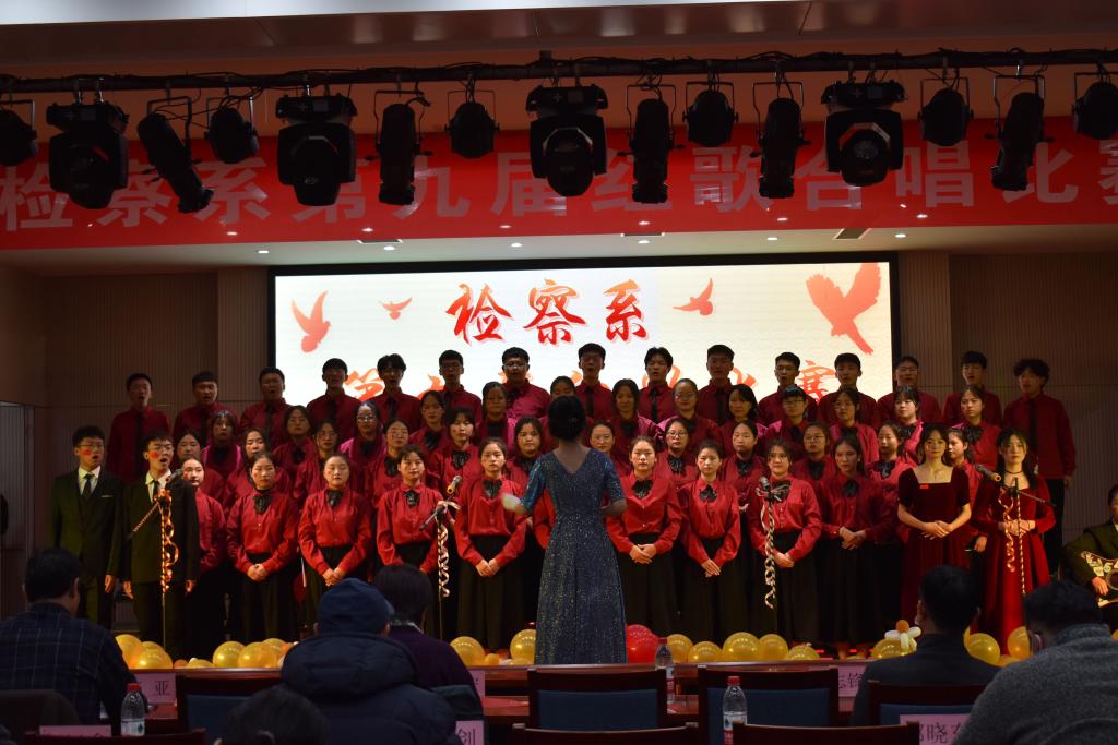 建党百年创辉煌,高唱红歌梦飞扬。为讴歌中国共产党带领中华民族实现伟大复兴的百年奋斗历程,颂扬中国共产党的丰功伟绩,唱响爱党爱国主旋律,检察系第九届红歌合唱比赛于2021年12月1日晚在2101报告厅隆重举行。学院副院长殷宏、学生处处长张亚出席观看比赛。
